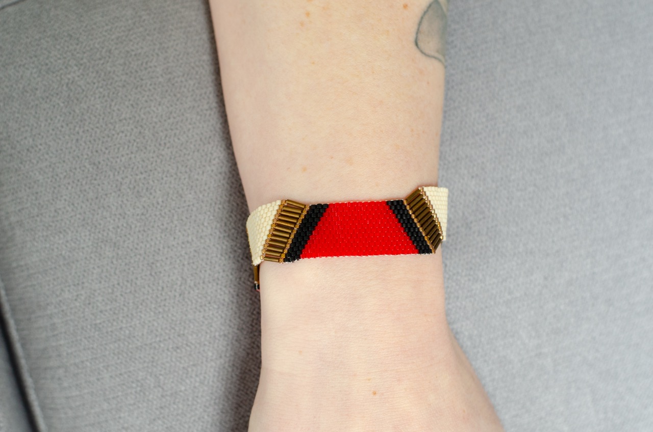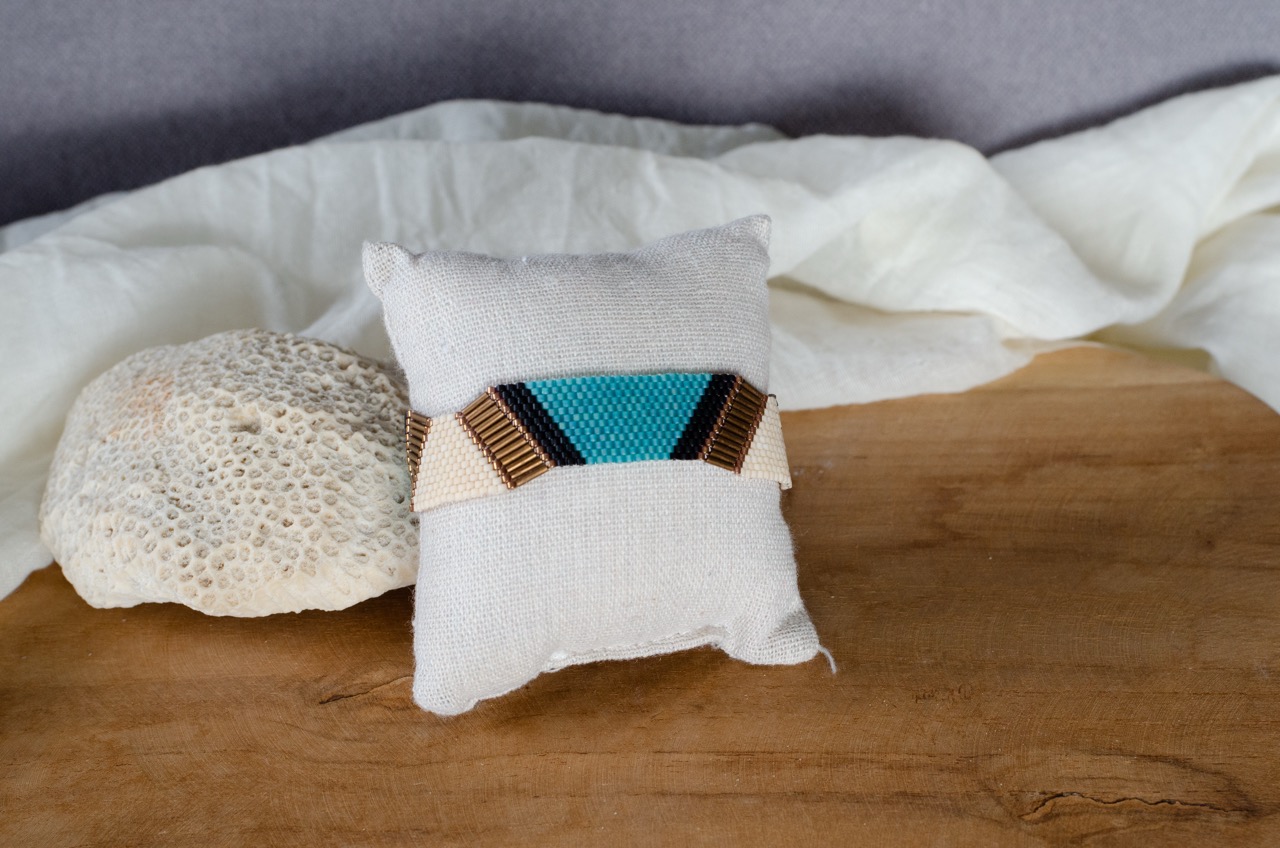 Emportez un souffle de l’élégance indienne à votre poignet avec le bracelet Priya, une pièce audacieuse qui rend hommage à la splendeur des saris traditionnels. Confectionné avec des perles minutieusement sélectionnées, ce bijou s’illumine de nuances chatoyantes – rouge intense, bronze radieux, turquoise éclatant et bleu captivant – rappelant les liserés et motifs raffinés des étoffes indiennes.